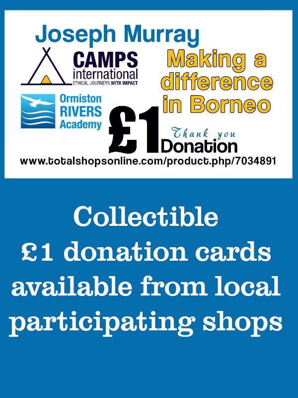 A sponsorship opportunity that I hope you will be interested in. My name is Joseph Murray and I am a pupil at Ormiston Rivers Academy in Burnham On Crouch. In 2019, I am travelling to Borneo with Camps International where I will be participating in many different community projects to benefit local villages and towns such as helping to build schools and community centres. I will also be taking part in activities to help save Borneo's unique biodiversity and lessen the effects of deforestation by planting new trees and helping to rebuild animal habitats. For more information you can visit the Camps International website: http://campsinternational.com.